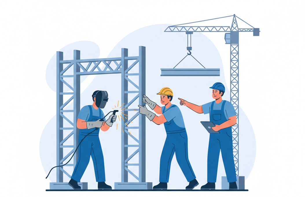 Execução de soldagem e montagem no local, garantindo agilidade, segurança e conformidade técnica em cada projeto.